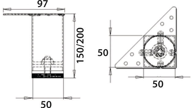Kanttijalka 50x50 150mm (Säätö +20mm)
