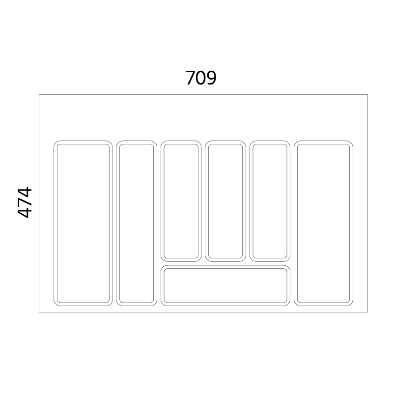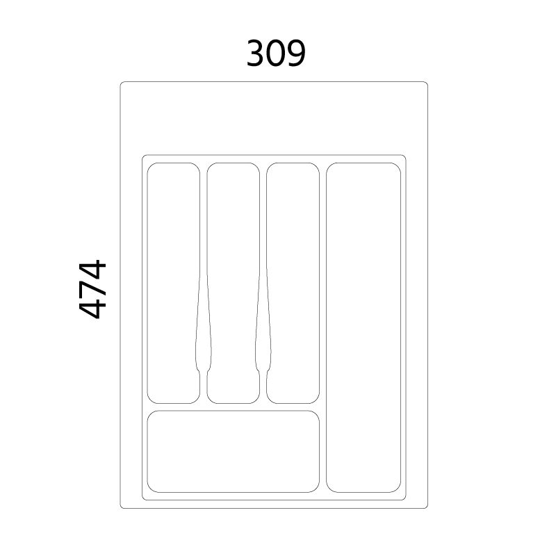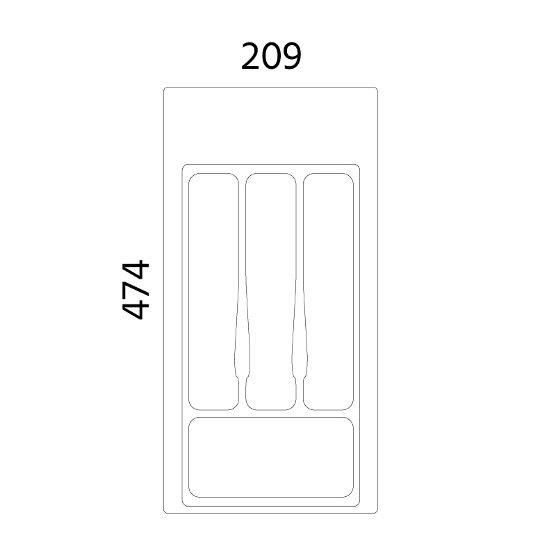 Ruokailuvälinelaatikko hidastavalle laatikolle lev 300mm - 800mm