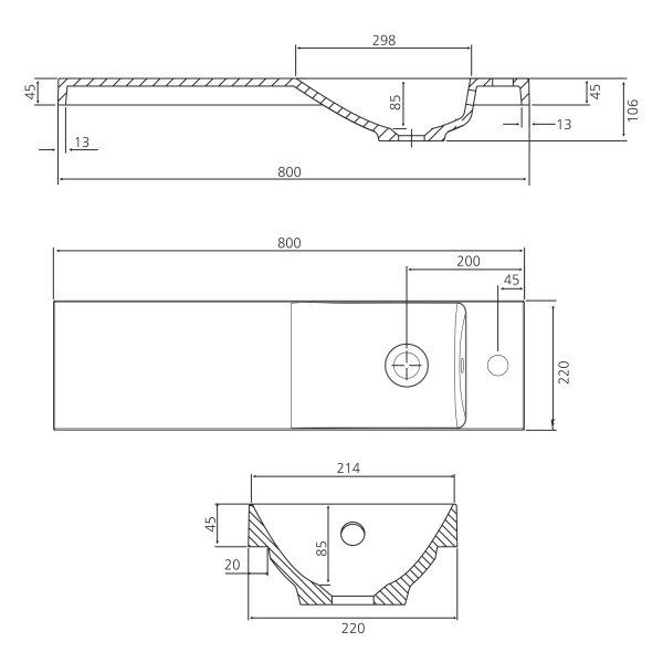 Penelope valumarmoriallas 80 800x220x45/106mm. Altaassa kestävä evermite pinnoite. Sopii tasoon upotettavaksi, runkosyvyydelle 190-200mm tai seinään kiinnitettäväksi erillisillä kannattimilla. Altaan